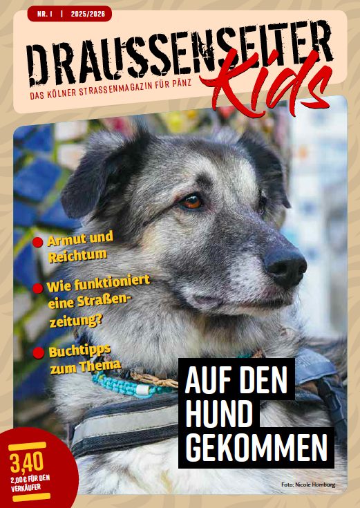 Natürlich kann man das kleine Heft auch bei unseren (wohnungslosen) Straßenzeitungsverkäufern erwerben oder als „Klassensatz“ bestellen unter schule@draussenseiter-koeln.de