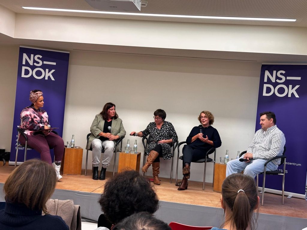 Gemeinsam mit Dr. Dorothea Viktoren, Dr. Sybille Fraquelli und Johannes Geyer und unter der guten Moderation von Shavu Nsenga diskutierten wir gestern im NS-Dokumentationszentrum Köln darüber, welche Faktoren wichtig sind, dass sich idealerweise alle Menschen in einer Stadt wohlfühlen. Wem gehört überhaupt der öffentliche Raum? Und wer entscheidet über die Nutzung von Flächen wie Schulhöfe, Parkanlagen oder Plätzen? Die Veranstaltung gehörte zum Rahmenprogramm der Ausstellung „WE…build“, die man gerade im Kellergewölbe des NS DOK besuchen kann. Die Podiumsdiskussion wurde durch Graphic Recording festgehalten und ist ab sofort fester Bestandteil der wirklich lohnenswerten interaktiven Ausstellung.